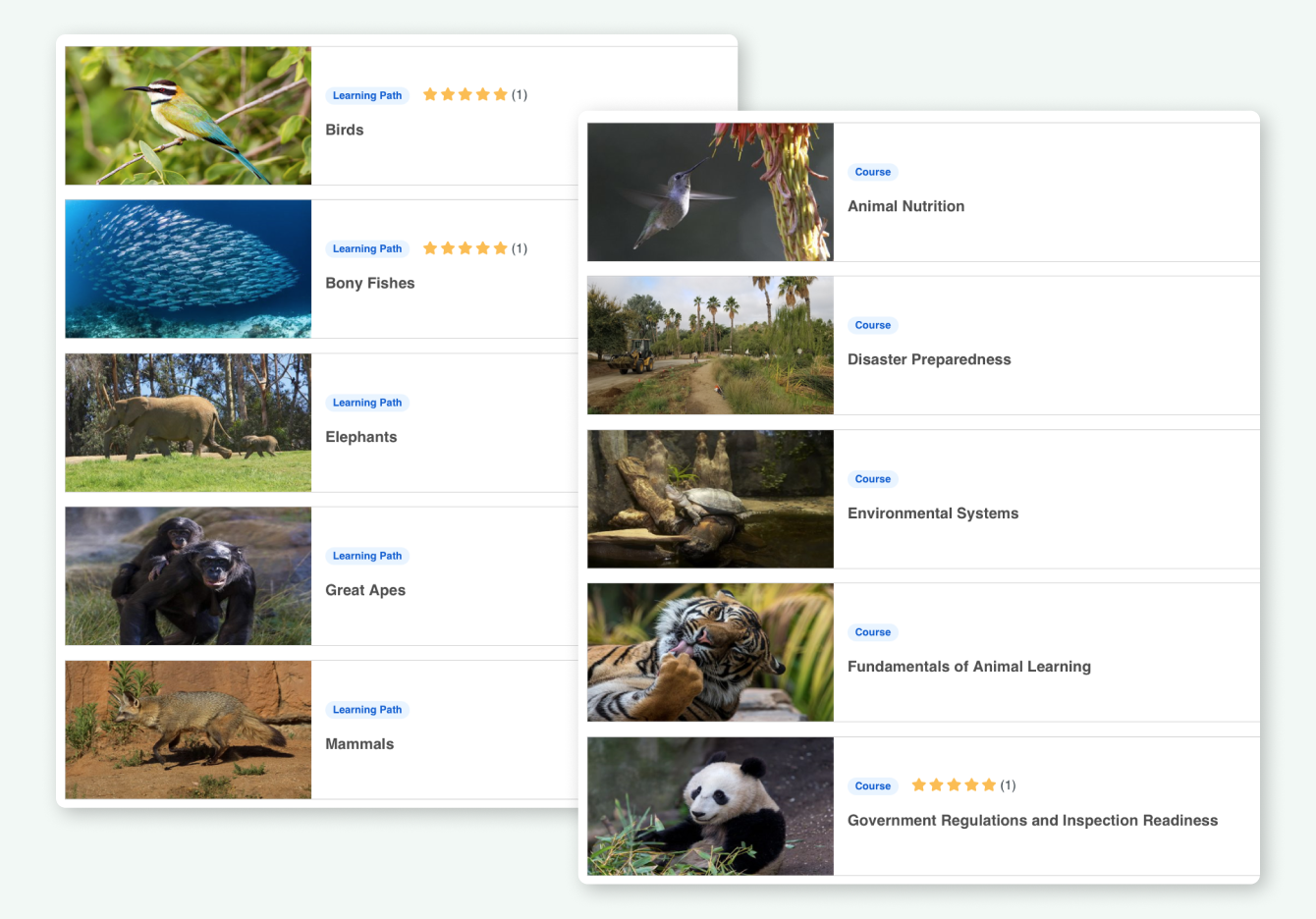 - Comprehensive Course Library: Explore hundreds of courses covering wildlife and care, along with communication, compliance, business operations, health, and safety.